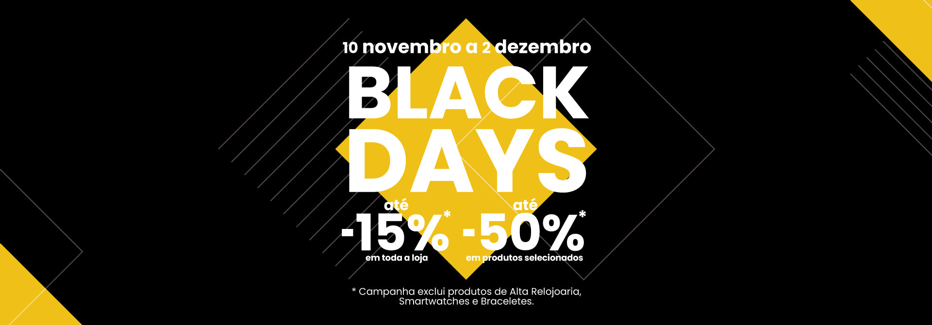 * Excepto em Alta Relojoaria, Braceletes e Smartwatches. Não acumulável com outras promoções.