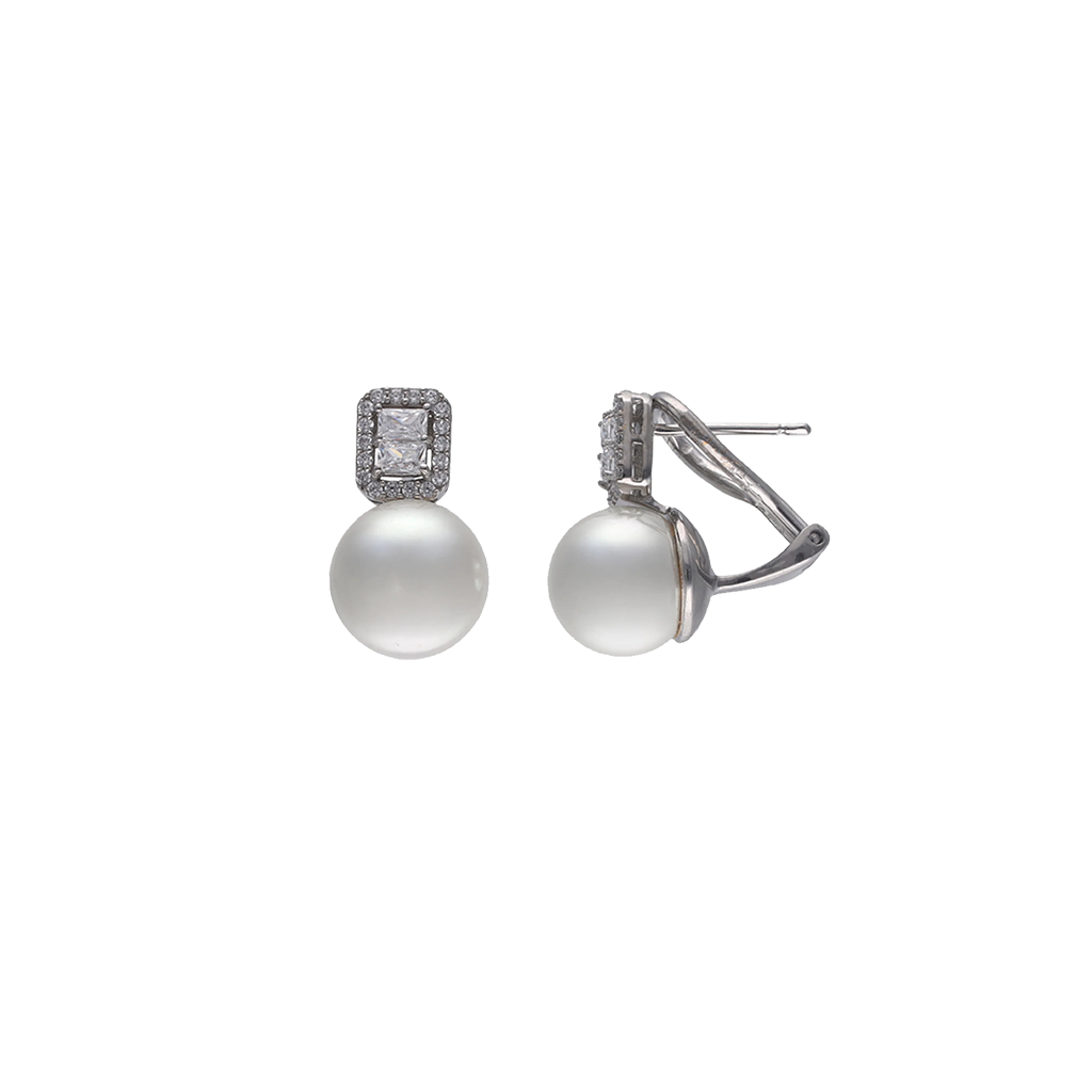 Brincos prateados com fecho ômega, zircônias quadradas e uma pérola branca redonda de 10 mm. A coleção Exquisite combina delicadeza e presença num jogo de contrastes concebido para quem aprecia o melhor. Brincos que equilibram brilho e pureza com personalidade, sem necessidade de ostentação.