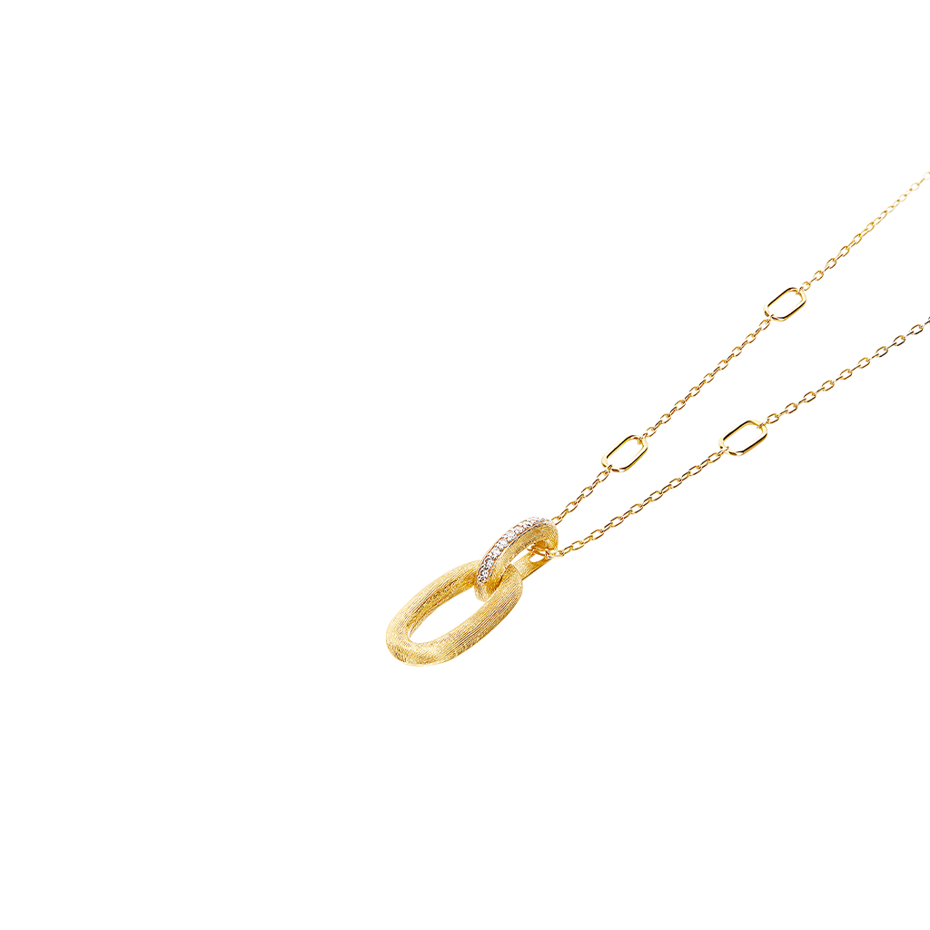 Bolas de ouro elegantes, gravadas à mão com sabedoria artesanal, perseguem-se ao longo de diamantes cintilantes neste colar contemporâneo.