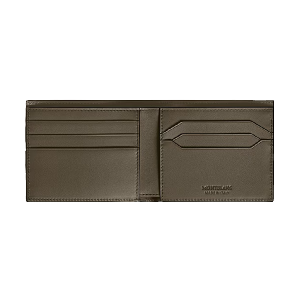 Elegante e compacta, esta carteira clássica dobrável é uma companheira refinada para o dia a dia. Confeccionada em couro exclusivo com a nossa estampa Extreme 3.0 em um tom terroso de cáqui, ela combina artesanato refinado com praticidade. Internamente, possui seis compartimentos para cartões de crédito, dois compartimentos para notas, dois bolsos adicionais para recibos e o discreto emblema da Montblanc na parte frontal.