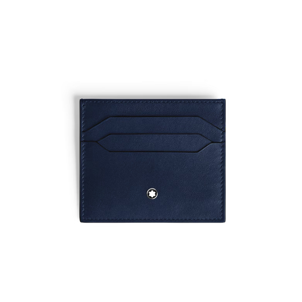 Confeccionado com maestria em luxuoso couro de vitelo macio, este porta-cartões apresenta um sofisticado design bicolor com a frente preta e um tom contrastante de azul-marinho. Pensado para a praticidade moderna, oferece armazenamento seguro para até cinco cartões de crédito, garantindo que seus itens mais importantes estejam sempre à mão. A parte frontal é discretamente adornada com o icônico emblema da Montblanc, adicionando um toque de elegância refinada.