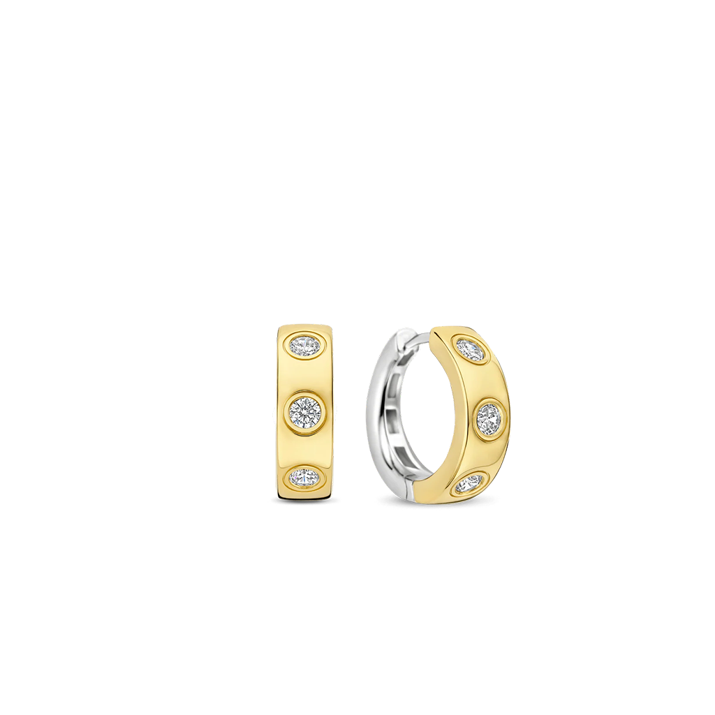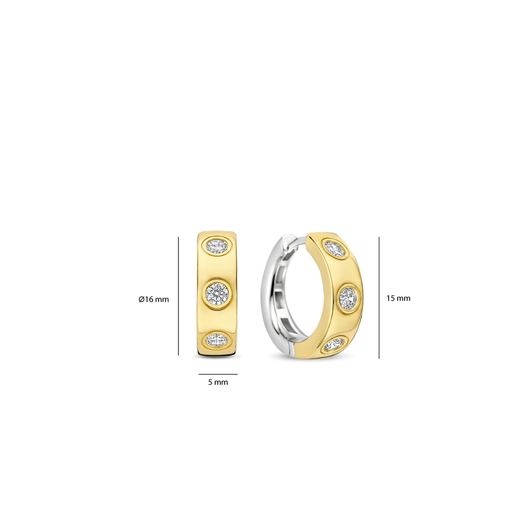 Os brincos Classic Zirconia Hoops são confeccionados em prata de lei 925 de alta qualidade e finalizados com um banho de ouro vermeil de 18 quilates. Com 16 mm de diâmetro, estes brincos são cravejados com zircônias redondas distribuídas uniformemente na haste, criando um brilho refinado e luxuoso. O design suave e ligeiramente mais largo confere aos brincos uma aparência marcante e atemporal, enquanto as zircônias captam a luz de forma deslumbrante a cada movimento. Graças ao seu design clássico, estes brincos de argola de 16 mm com banho de ouro vermeil de 18 quilates e zircônias são fáceis de combinar tanto com joias minimalistas quanto com peças mais ousadas. O tamanho compacto os torna ideais para o uso diário, enquanto o brilho das zircônias adiciona um toque de elegância. Os brincos são livres de níquel e hipoalergênicos, oferecendo conforto e um acabamento de alta qualidade, perfeitos para uma coleção de joias atemporal. A Coleção Classics forma a base de uma coleção de joias atemporal. Uma seleção cuidadosamente escolhida, onde clareza, proporção e artesanato são os pilares. Em vez de seguir tendências, estes designs extraem a sua força da consistência e do requinte. Pedras de diversas formas e tamanhos acrescentam nuances e profundidade, enquanto os elementos pavé e solitários criam um brilho subtil e discreto. A coleção oferece versatilidade no estilo, podendo ser usada sozinha ou combinada com designs mais marcantes.