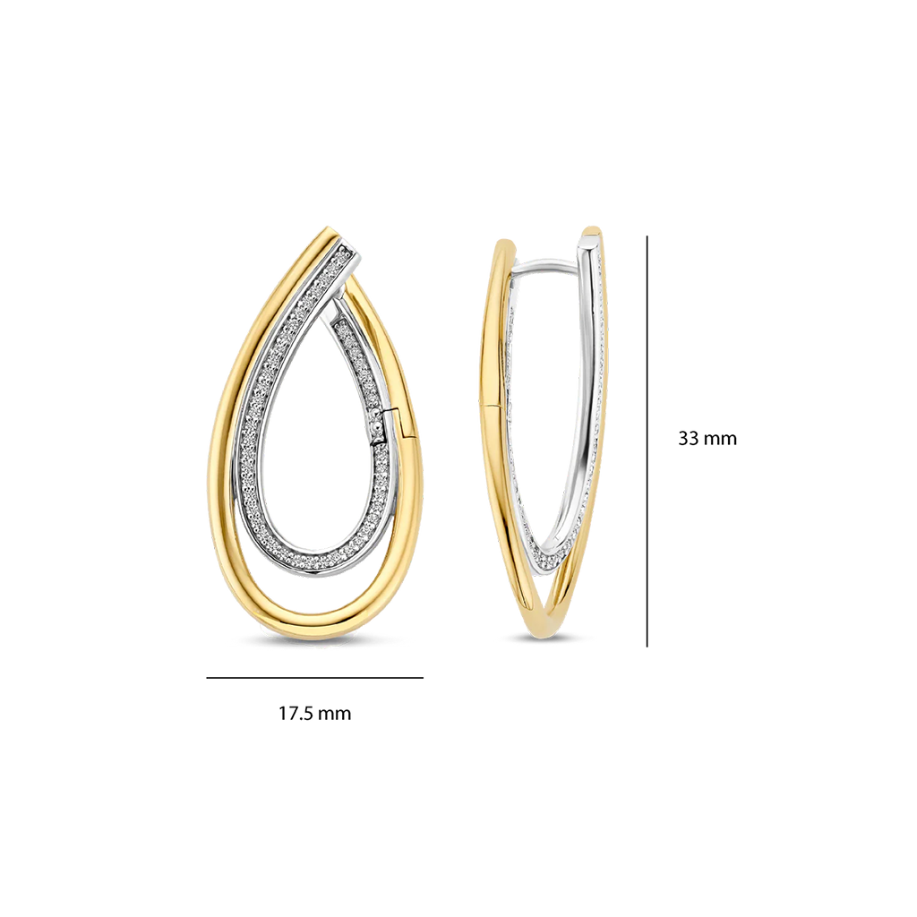 Estes brincos orgânicos de zircônia são confeccionados em prata de lei 925 de alta qualidade e finalizados com um revestimento em ouro vermeil de 18 quilates. Os brincos apresentam um formato orgânico e fluido, cravejados com zircônias cuidadosamente posicionadas ao longo da curva interna. A combinação da superfície em tom dourado quente com o brilho das zircônias cria um jogo de luz refinado a cada movimento. O fecho diferenciado curva-se elegantemente ao redor da orelha, adicionando profundidade e um sutil efeito dinâmico ao design. Graças à sua silhueta aberta e orgânica, os brincos transmitem leveza e graciosidade, mantendo, ao mesmo tempo, uma forte presença. Estes brincos de zircônia com revestimento em ouro vermeil de 18 quilates são perfeitos para serem usados sozinhos como um acessório estiloso ou combinados com outras joias em prata ou banhadas a ouro. A Coleção Luxury Stone centra-se na força da pedra e da forma. Silhuetas refinadas destacam pedras cuidadosamente selecionadas, representadas por suaves formas ovais, briolettes e formatos orgânicos de seixos, onde a forma acompanha a pedra. Dos tons de preto profundo ao brilho perolado, com facetas sutis ou polimentos suaves, o caráter natural permanece em primeiro plano. A prata de lei 925 forma a base, refinada com detalhes em ouro 18k que adicionam contraste e profundidade sem comprometer o equilíbrio. Uma coleção atemporal onde forma, pedra e acabamento se unem em uma assinatura serena e inconfundível.