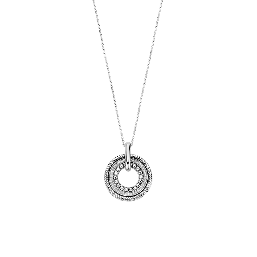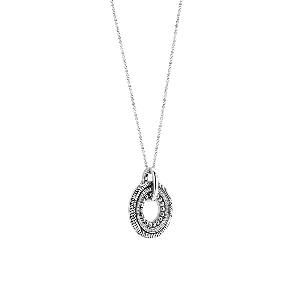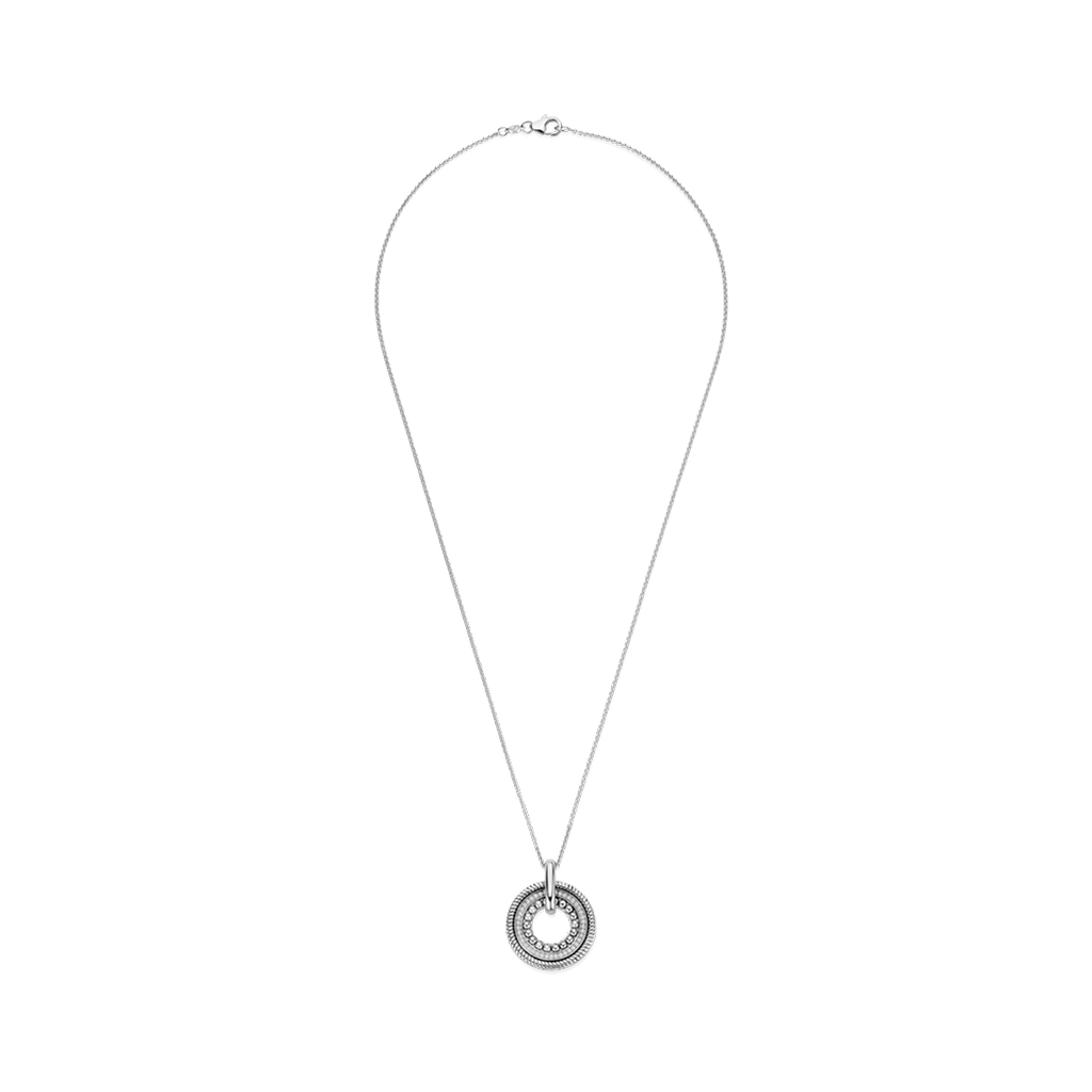 O Colar Círculo Estruturado com pingente é confeccionado em prata de lei 925 de alta qualidade e apresenta um pingente circular com múltiplas texturas. O design combina uma estrutura canelada, uma estrutura com contas e uma seção cravejada com zircônias, criando um jogo de luz refinado. O centro vazado realça o efeito de camadas e adiciona profundidade ao design. O colar acompanha uma delicada corrente de prata que permite que o pingente se assente perfeitamente no decote. Graças ao fecho de encaixe, o pingente pode ser facilmente removido e usado em outro colar base da TI SENTO. Este colar circular oferece versatilidade no estilo, enquanto a combinação de texturas e zircônias confere-lhe um caráter distinto e atemporal. Use-o sozinho ou troque os pingentes para criar um visual personalizado e em camadas. A Coleção Structures é definida por forma, ritmo e repetição. Linhas gráficas, construções em camadas e detalhes cuidadosamente compostos se unem em designs com uma presença arquitetônica marcante. Confeccionada em prata de lei 925 e frequentemente com banho de ouro 18k, a coleção apresenta elos, círculos e formatos de anéis que equilibram força e requinte. De anéis marcantes a brincos statement e colares em camadas, esta coleção define o estilo e foi criada para ser usada tanto sozinha quanto combinada com outras peças. Com design atemporal, detalhes modernos e um estilo definido e confiante.